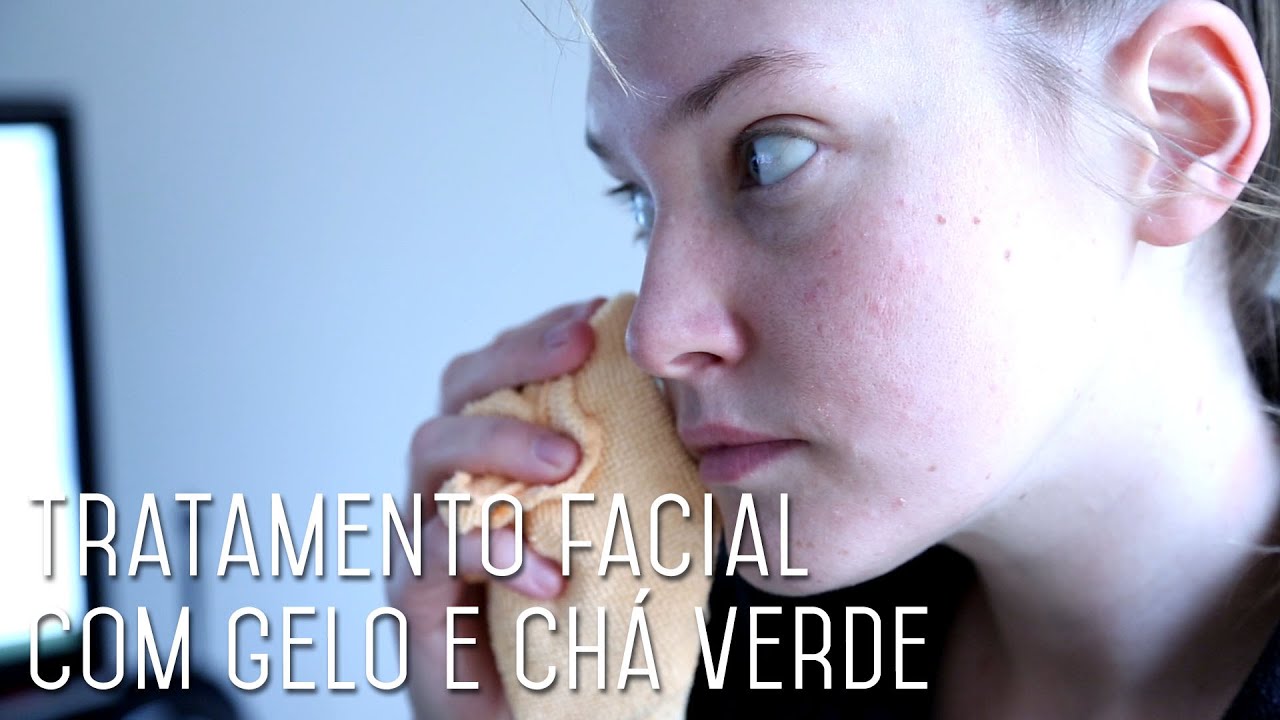Aplique o gelo de chá verde na pele. Coloque o chá na forminha e quando estiver pronto, aplique no rosto, todas as manhãs.