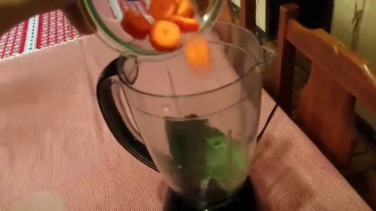 1. No liquidificador, bata a couve com a quantidade de água que quiser.
