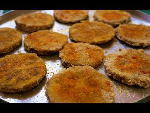 Além da massinha que recobre a berinjela, tem mais um diferencial: você não empanar apenas uma fatia de berinjela, mas vai fazer um sanduíche com duas fatias de berinjela, uma de tomate e queijo. Veja como fazer nesse vídeo do canal Cyber Cook: