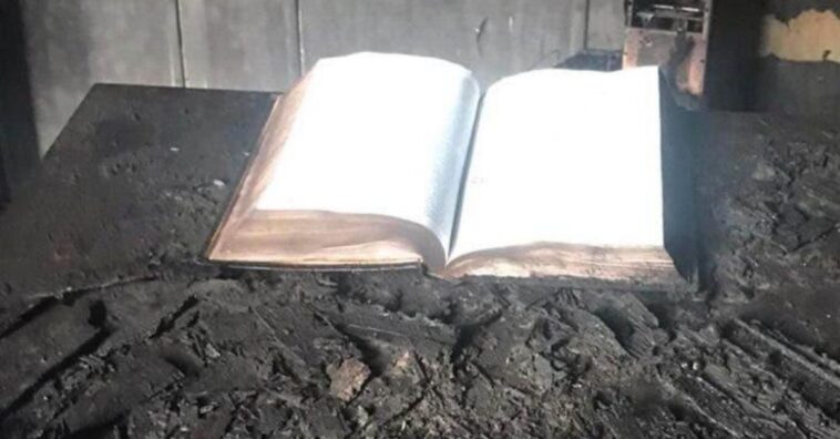 Embora muito tristes pela perda do seu local sagrado de orações, os fiéis ficaram intrigados com o que aconteceu e consideram que as Bíblias intactas foram um sinal do poder divino.