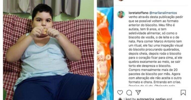 Então, ela resolveu fazer um apelo para a marca do produto nas redes sociais. Na publicação, a mãe pediu para que a marca voltasse a produzir os biscoitos no formato que Marco Antônio gosta. Sem os biscoitos, ele chora e entra em crise. Até o dia 10 de junho a publicação de Loreta teve mais de 2 mil curtidas e 1,5 mil comentários.