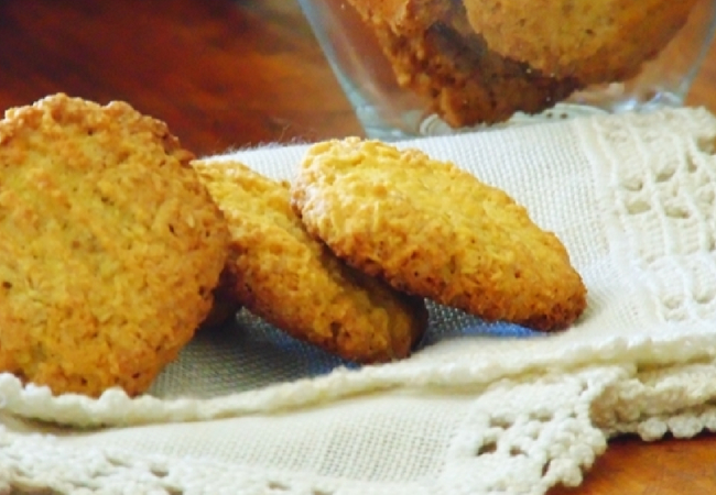 Crédito: Pecados no Prato A aveia enriquece o biscoito de coco com fibras, com seu sabor suave e com uma consistência especial. Tão simples quanto as outras, essa opção, do Pecados no Prato, é feita com poucos ingredientes e fica pronta rapidinho.