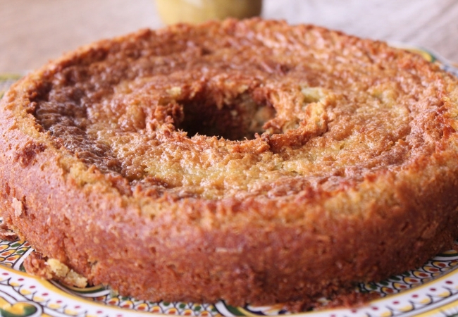 - Se preferir um bolo mais molhadinho, faça uma calda de abacaxi. Faça vários furinhos no bolo com um palito de dente, molhe o bolo com a calda. Sirva quente ou gelado.