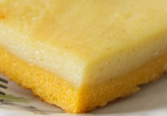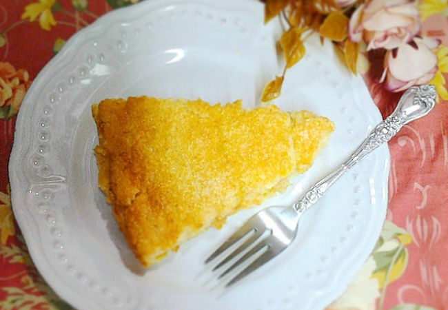 Tem muitas ideias deliciosas de bolos para quem precisa evitar certos ingredientes. Esse bolo é sem lactose e também sem ovos. Leva trigo, fubá, açúcar, fermento, óleo, vinagre, leite vegetal e coco ralado. Fica com um visual simples e apetitoso.