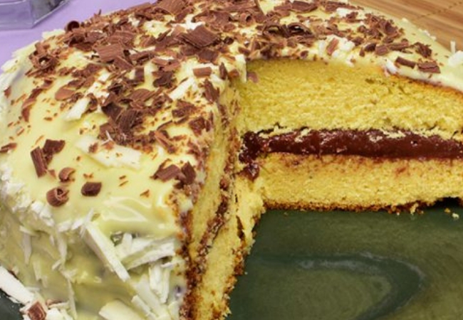 Não precisa ser época de festa junina para fazer esse bolo, embora combine tanto com a data. Se gosta de doce de leite, já pode imaginar como o resultado fica divino. O ideal é que use um doce de leite caseiro, mais molinho, ou leite condensado cozido na pressão.