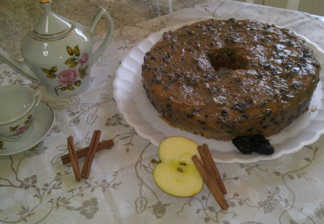 Esse bolo possui uma leveza incrível, com uma textura bem fofinha que agrada aos mais diversos públicos. Se você gosta de maçã com ameixa e um toque de canela, esse bolo é para você. O contraste entre essas duas frutas gera um sabor suave que proporciona um lanche clássico e refinado, perfeito para acompanhar um cafezinho.