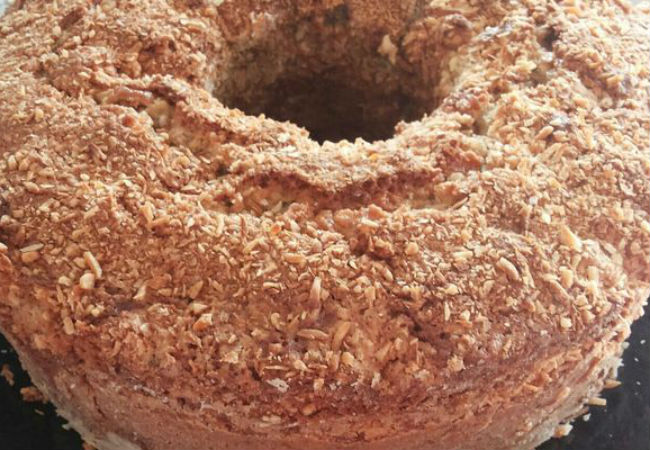 A presença da aveia torna esse bolo ainda mais saudável, pois é rica em carboidratos complexos, em proteínas e em fibras solúveis. Desse modo, ela apresenta benefícios para diversas funções do corpo, como o sistema cardiovascular e digestivo.