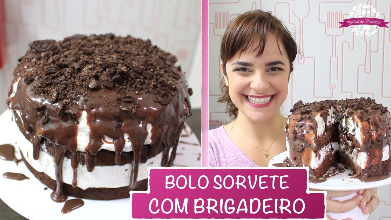 Essa receita é com uma massa de brownie na base, um recheio de brigadeiro de Nutella e sorvete, depois tem a cobertura maravilhosa.