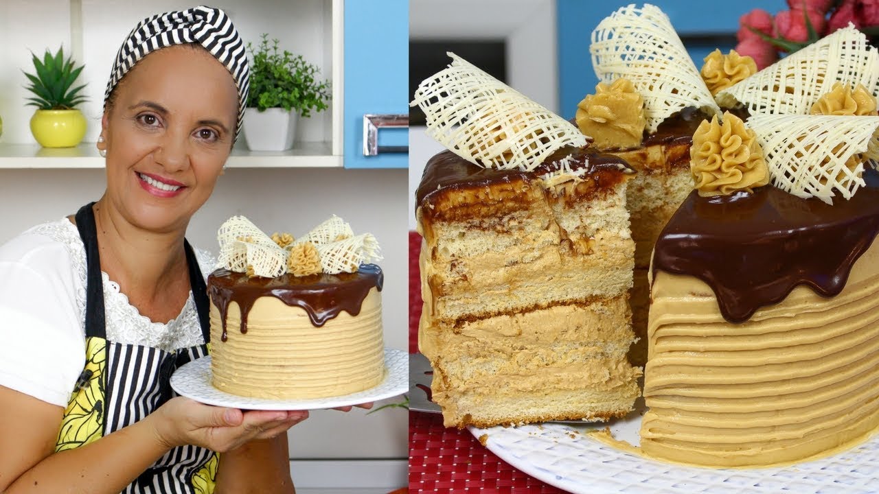 Você vai fazer a massa de pão de ló, que fica bem alta para cortar em fatias, depois faz o recheio de buttercream com doce de leite e chantili. O terceiro passo é a calda e tem também a cobertura. Veja todos os detalhes desse bolo no vídeo do canal da Chef Léo Oliveira:
