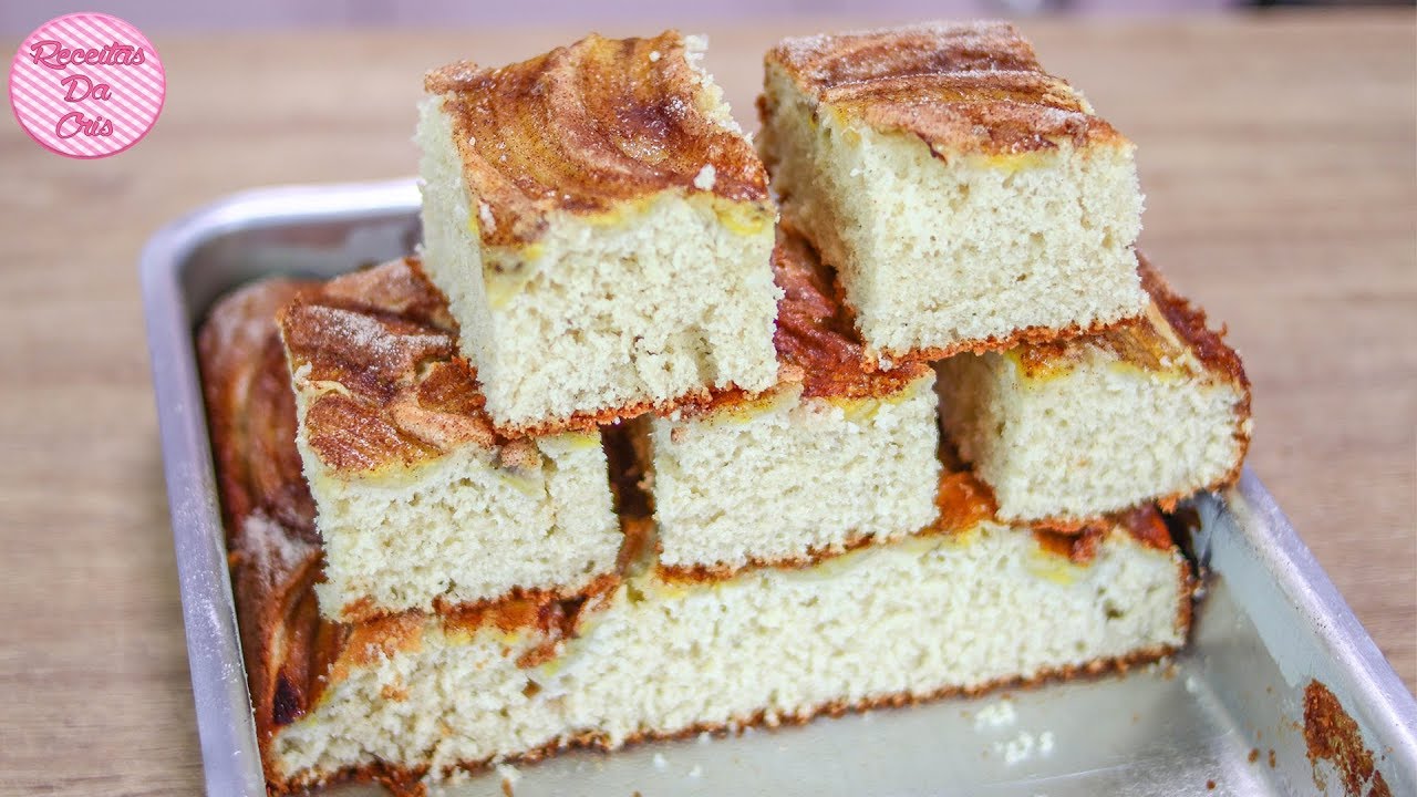Esse é aquele bolo maravilhoso, aromático, que você corta em quadrados, coloca na mesa e vê todo mundo comer com gosto. A medida da xícara é de 240 mililitros.