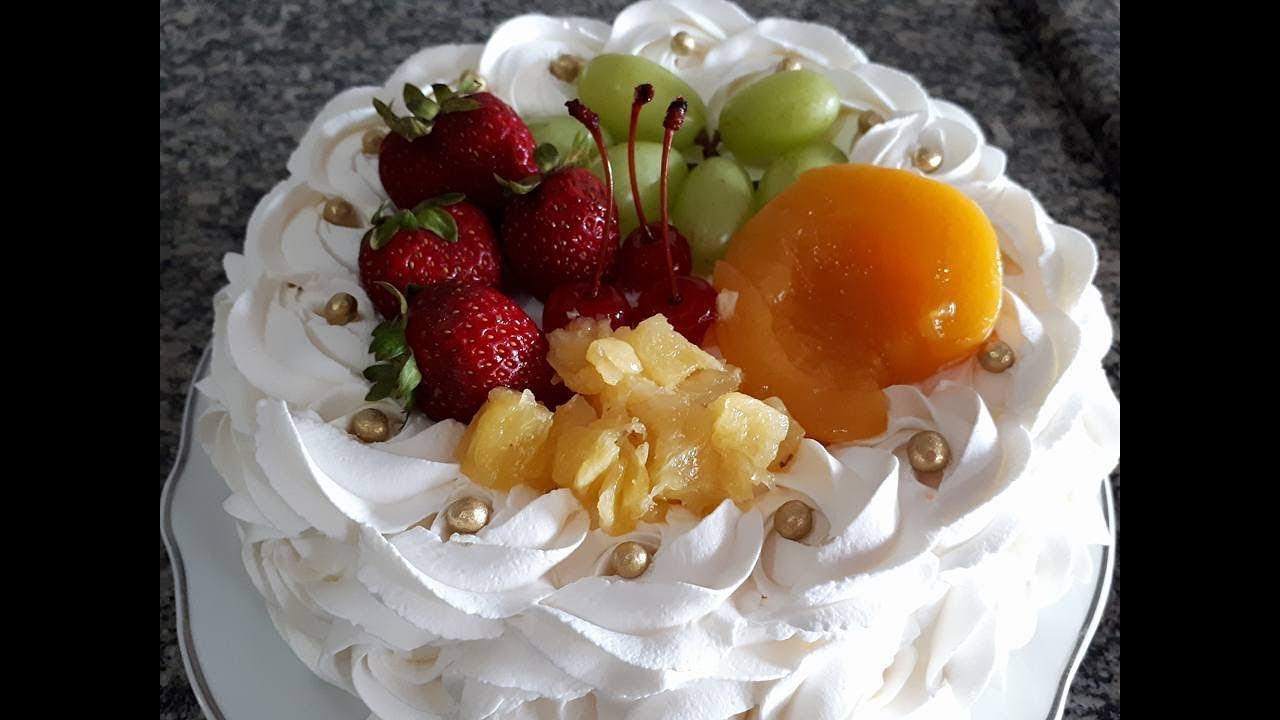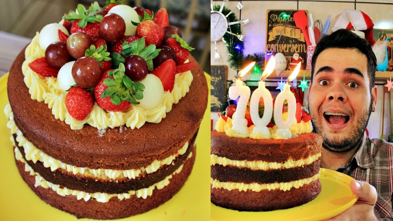 Esse bolo leva uma massa simples e bem fofa, um recheio bem cremoso e frutas coloridas frescas para decorar.