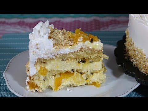 Esse é um bolo de festa com bastante recheio, e leva manga, abacaxi e maracujá. Veja o que vai precisar para o recheio que pode ser usado na sua massa simples de pão de ló: