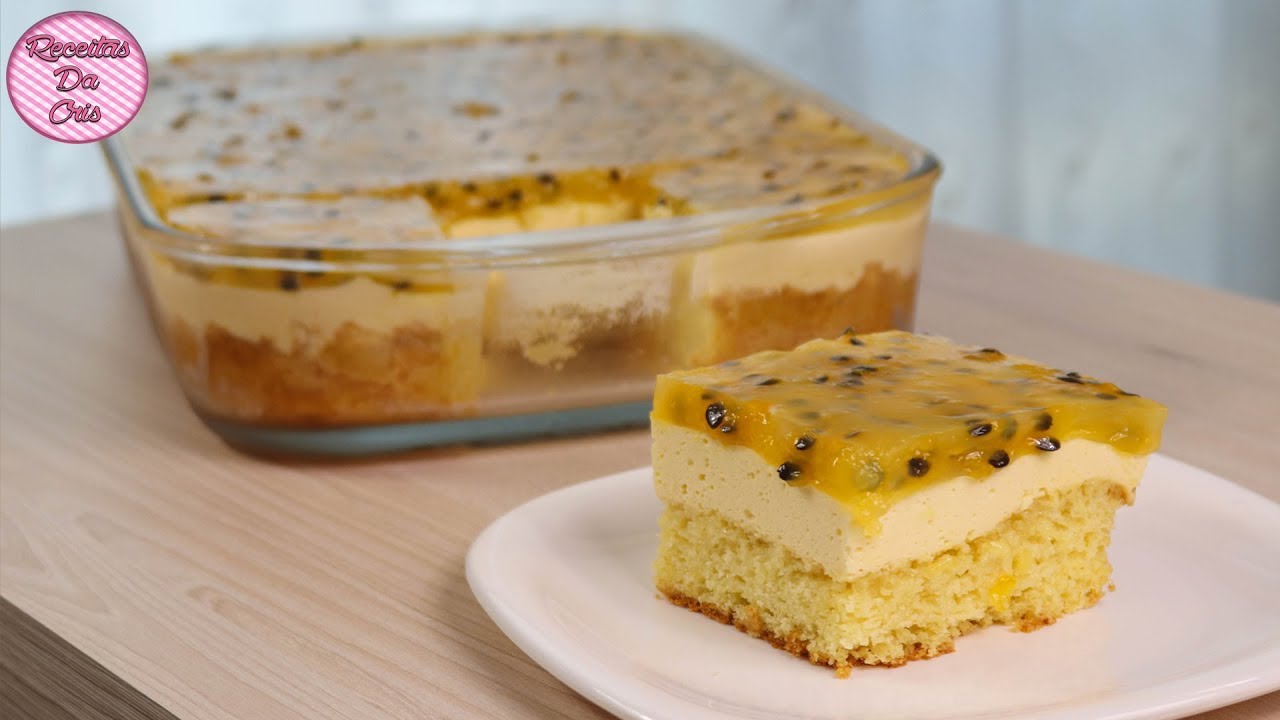 Essa opção traz uma massa de bolo de maracujá como base e, por cima, uma deliciosa mousse de maracujá. Tem também uma calda linda para a cobertura.