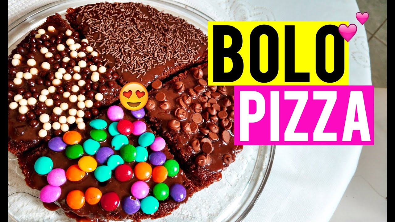 Essa receita é diferente e mais prática. Você vai fazer uma massa de bolo simples, sabor chocolate, vai assar, depois cortar em fatias para ficar semelhante a uma pizza cortada, então vai colocar as coberturas mais deliciosas que puder fazer. Nessa sugestão a dica é usar um brigadeiro mole coberto com muitos confeitos. Veja como é fácil de fazer: