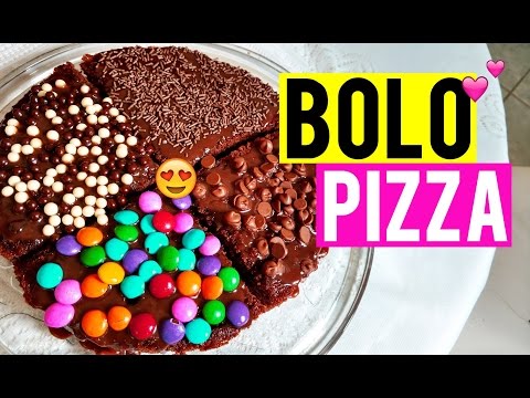 Essa receita é diferente e mais prática. Você vai fazer uma massa de bolo simples, sabor chocolate, vai assar, depois cortar em fatias para ficar semelhante a uma pizza cortada, então vai colocar as coberturas mais deliciosas que puder fazer. Nessa sugestão a dica é usar um brigadeiro mole coberto com muitos confeitos. Veja como é fácil de fazer: