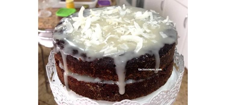 - Faça a cobertura derretendo o chocolate no micro-ondas e depois misturando com o creme de leite. Espalhe por cima do bolo e sirva decorado com mais coco ralado.