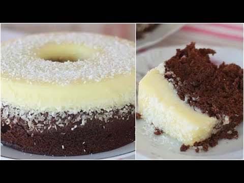 5. Bolo-pudim de prestígio (chocolate com coco)