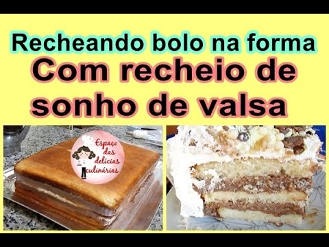 Essa receita explora o sabor típico do bolo sonho de valsa e proporciona um clássico recheio com leite condensado, leite, amido de milho, gemas, essência de baunilha e bombons Serenata de amor. A calda é preparada com leite gelado e achocolatado, enquanto a cobertura leva chocolate em pó.