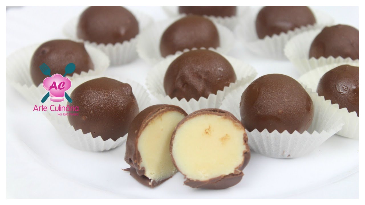 Para preparar essa receita, você não precisa nem mesmo de forminhas ou equipamentos especiais. Basta a travessa de vidro para derreter o chocolate fracionado (é mais fácil de trabalhar com esse tipo) e um garfo para escorrer o excesso. Claro que o papel manteiga não pode faltar, enquanto o bombom caseiro endurece. Basta fazer bolinhas, mergulhar no chocolate e pronto. Veja o passo a passo no vídeo abaixo.