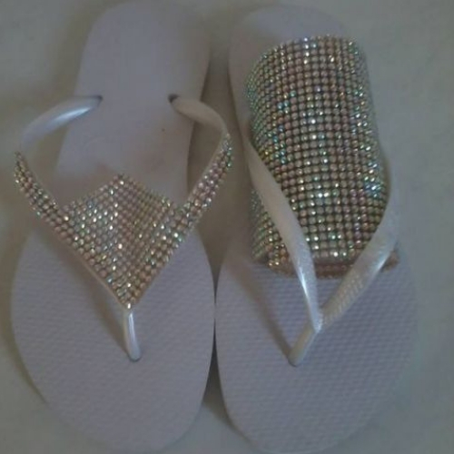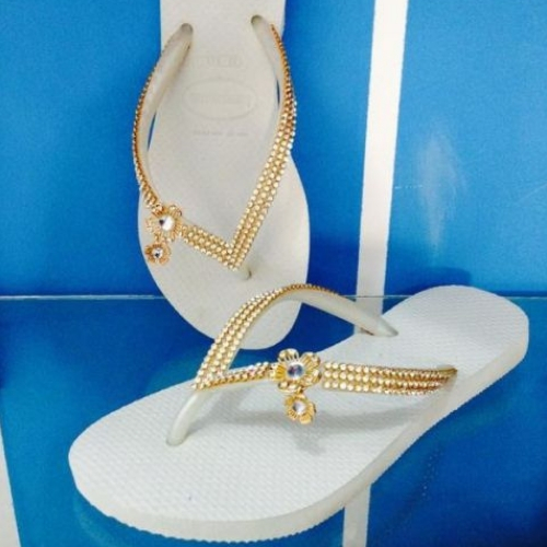 Bordar chinelo com pedraria é um dos estilos com maior valor agregado, pois as pedras carregam esse valor no seu visual. Só precisa ter criatividade e caprichar nos efeitos decorativos.