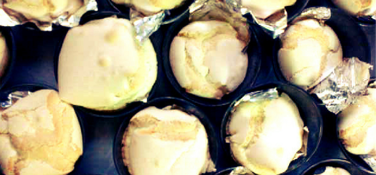 A primeira receita é feita com polvilho doce, ovos e açúcar, em forminhas de cupcake ou de pão de queijo, a que você tiver em casa. A massa fica bem firme e, mesmo não levando fermento, dobra de tamanho depois de assada.