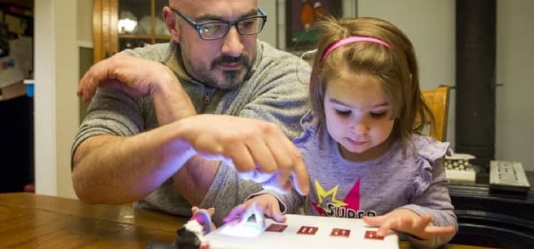 O que ele fez então foi criar um brinquedo para ensinar Rebecca os conceitos primários do Braille, a escrita para cegos. O brinquedo, que ele chama de BecDot, é do tamanho de um tablet, possui uma impressora 3D na superfície e quatro células Braille.
