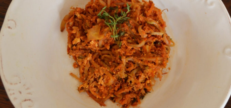 Essa receita é parecida com a da salada, mas dessa vez tudo é refogado para comer quentinho. O broto serve como substituto da massa, assim como nas receitas de noodles de vegetais em que a massa é substituída por abobrinha, por exemplo. Nesse caso, o broto será acompanhado por cenoura, repolho, alho, pimenta, curry, tomilho fresco, ovos e molho de tomate.