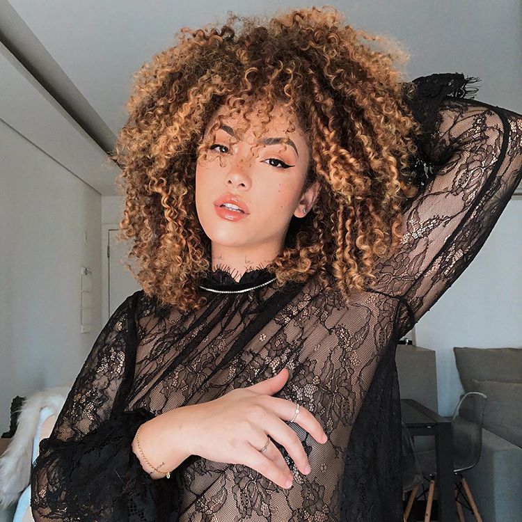 1. Que tal dar uma clareada nos cachos para iluminar o rosto?