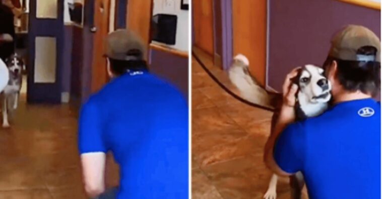 Ele correu em direção a seu humano, abanando o rabo freneticamente, como se soubesse que finalmente estava em casa. O amor e a alegria entre eles eram palpáveis, comoventes e verdadeiramente indescritíveis.