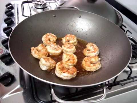 Na hora do preparo, os camarões vão tostar na frigideira sem nada: não vai qualquer tipo de gordura nem de tempero. Os ingredientes são adicionados depois. O Chef explica o motivo no vídeo: