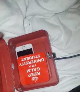 Usando o nome fictício de Aubrey para preservar sua identidade, a jovem contou, em entrevista para o site da Universidade, que percebeu algo estranho. Havia um furo em um pequeno cofre vermelho que estava em uma das paredes do banheiro usado por ela e pelos colegas. Ao abrir a caixa, havia um iPhone com a câmera ligada.