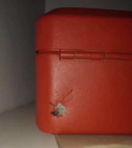 Aubrey contou que, quando ela e os colegas se mudaram para o apartamento, o cofre já estava lá no mesmo lugar. Desde o início a jovem já desconfiava daquele pequeno furo no cofre, e por isso sempre o virava quando ia usar o banheiro. Mas, pouco depois, o cofre estava na posição original de novo, mudado por outra pessoa.