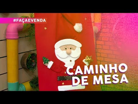 Se quiser fazer uma peça com mais volume e aplicações, esse modelo com base de tecido e decoração de Papai Noel em feltro é uma graça. Nem precisa colocar enfeite por cima, pois o caminho de mesa deixa a decoração completa. Assista ao passo a passo: