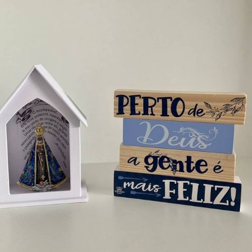 Ideia linda para valorizar seu santo de devoção sem precisar de muito espaço.