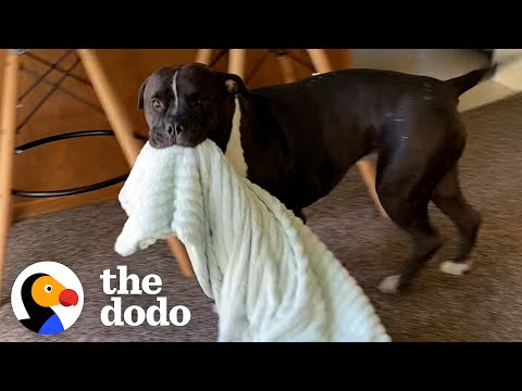 Mesmo depois que a família adotou outro cão para fazer companhia a Buddy, ele manteve seu hábito de andar com o cobertor para todo lado. Ao invés de desapegar dos objetos para passar mais tempo com seu novo irmão, Buddy influenciou o outro pit bull a fazer o mesmo.