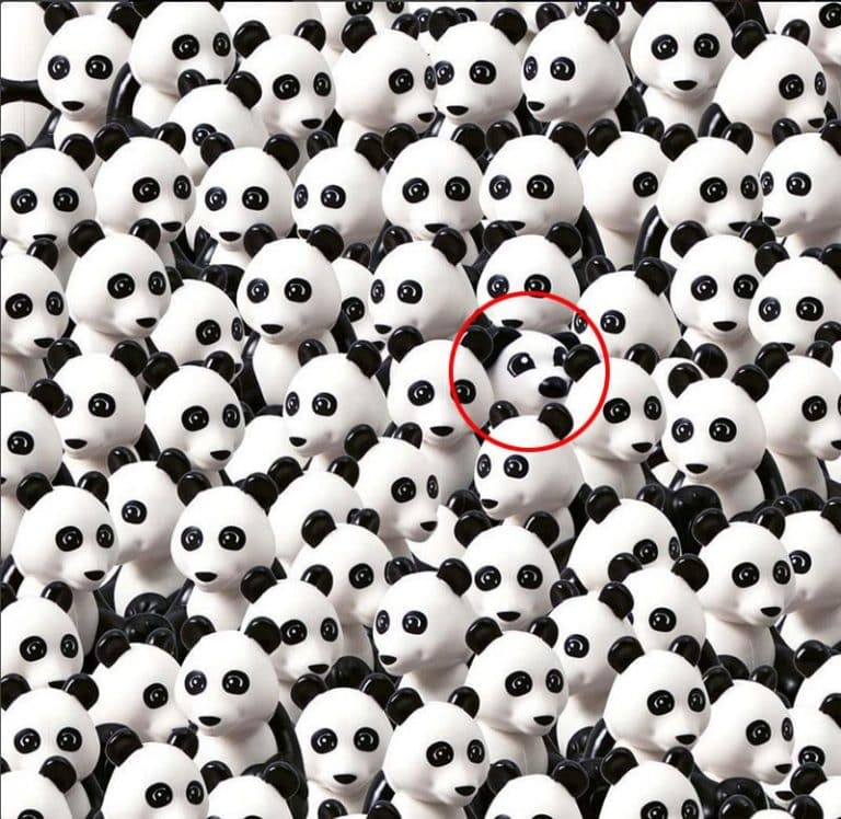 Então concentre-se na imagem abaixo e tente localizar um cachorro no meio dos pandas. Caso consiga encontrá-lo em até 8 segundos, você saberá que a saúde do seu cérebro está em perfeito estado. Mas caso não consiga, não se preocupe! Você precisa apenas fazer um pouco mais de exercício mental e treinar um pouco mais o seu cérebro para resolver esse tipo de desafios.