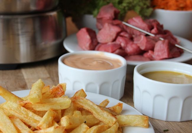 Não quer fazer um petisco simples de carne em tirinhas com batata frita? Então aproveite os dias mais frios e prepare um delicioso fondue. Essa receita leva óleo, gemas, limão, mostarda, mel, ketchup, sal, pimenta e um toque de vinho do Porto ou, se não tiver, de um licor de uva.