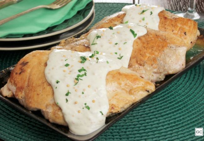 8. Carne de frango com molho de mostarda