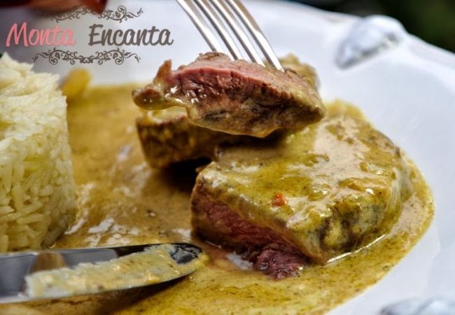 A carne com molho de mostarda também pode ser um bife simples, mas fino, de um corte macio. Para essa receita, a sugestão é servir acompanhado de um macarrão ao alho e óleo para harmonizar os sabores.