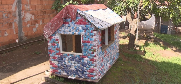 Usando apenas caixas, latinhas e outros materiais que seriam descartados, um morador da cidade de Sobradinho, no Distrito Federal, construiu uma casa para o seu filho de 5 anos. No entanto, a brincadeira acabou saindo cara.