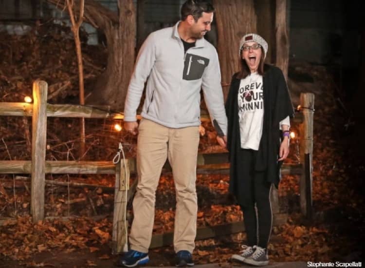 Danny ajoelhou-se e pediu a mão da namorada em casamento. Achando que esta seria a maior surpresa da noite, depois de dizer sim, ela soube que seu vestido de noiva estava esperando e que eles poderiam oficializar tudo na mesma noite.