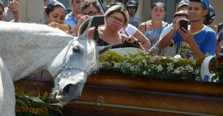 Durante o trajeto até o cemitério, o animal relinchava e parecia estar descontente com o acontecido. Ao chegar próximo ao corpo, o cavalo Sereno repousou a cabeça sobre o caixão, como se quisesse se despedir.