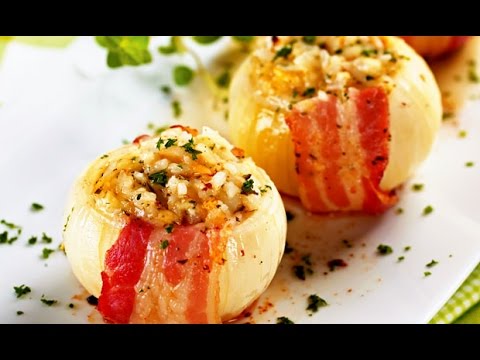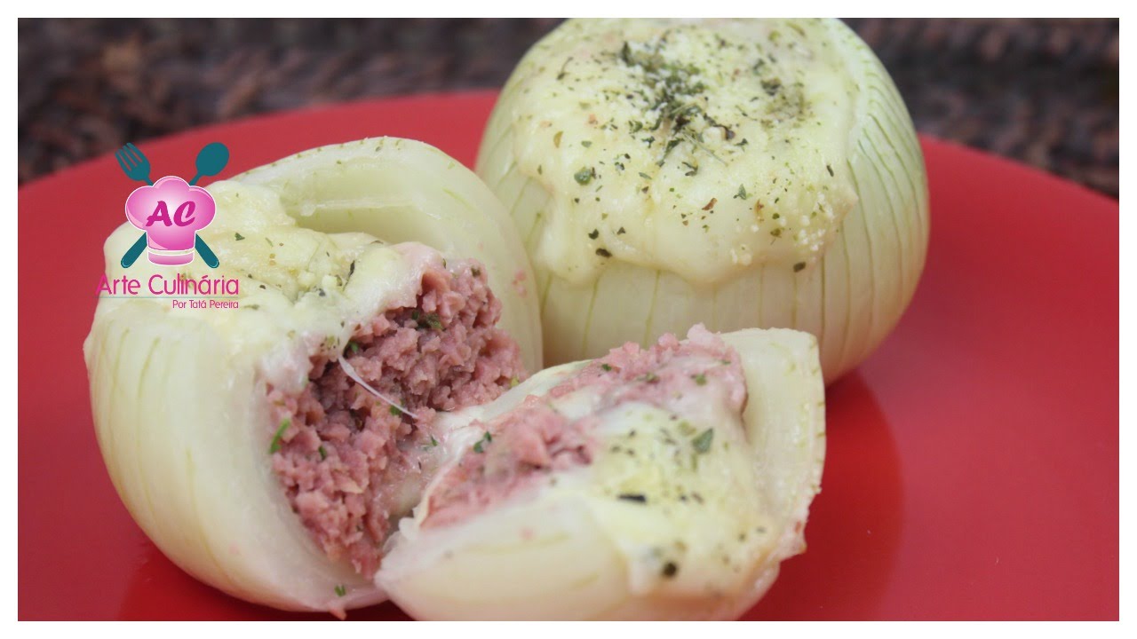Tem cebola com recheio de carne moída, bacon, queijo, calabresa, arroz, espinafre e até com bacalhau. Surpreenda seu paladar com esses sabores.