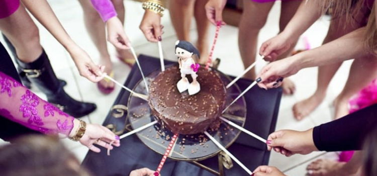 - Histórias de amizade: as convidadas escrevem em um papel algum momento engraçado que viveram junto com a noiva, sem identificar seu nome. A noiva vai pegar os papeis de uma caixa, aleatoriamente, e adivinhar quem escreveu. Se errar, paga uma prenda. Se acertar, a convidada paga a prenda;