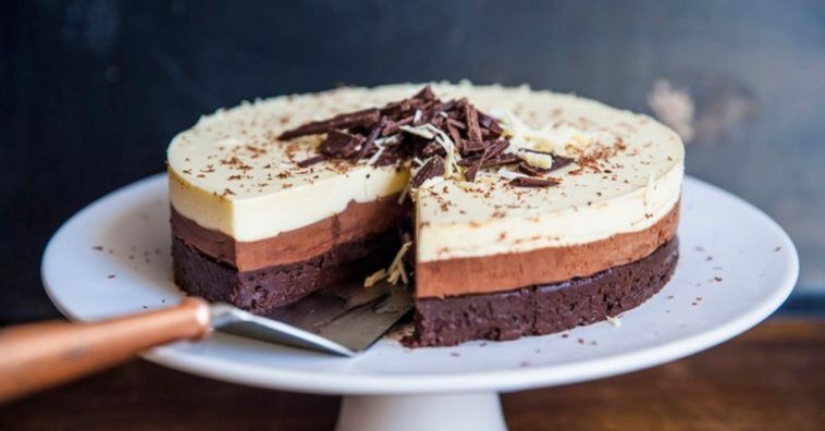 Nessa receita tem chocolate por todo lado. A base é feita com bolachas de chocolate. O creme leva queijo cremoso, creme de leite, açúcar, creme de avelã e ovos. Para a cobertura, mais creme de avelã com creme de leite misturado com chocolate ao leite derretido.