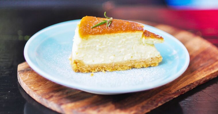 Mais uma ideia de cheesecake tradicional é essa opção, com pequenas variações da versão anterior. Também é feita com creme de leite fresco, cream cheese, ovos, açúcar, limão e extrato de baunilha, só que tem o diferencial da farinha de trigo, usada em pouca quantidade, mas que faz diferença na textura.