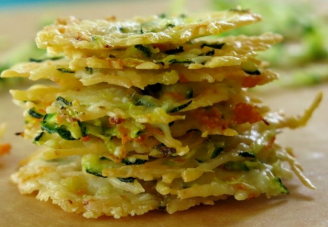 A abobrinha serve como um elemento praticamente neutro que absorve bem o sabor dos outros componentes utilizados e os realça. Assim, o sabor do queijo parmesão é acentuado nesses chips e contrasta maravilhosamente com a cenoura. Além disso, o parmesão faz com que haja uma mudança na textura dessa receita, distinguindo-se das outras receitas de chips de cenoura.