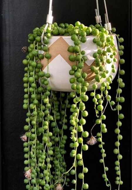 O colar-de-pérolas é uma planta suculenta pendente, também conhecida como colar-de-bolinhas ou tercinho. Seu nome científico é Senecio rowleyanus, ela é nativa da África, e uma das mais procuradas atualmente por quem deseja colecionar suculentas ou apenas cultivar várias plantas em casa. Por ser uma planta pendente, fica linda pendurada no teto, na parede ou apoiada sobre móveis mais altos.