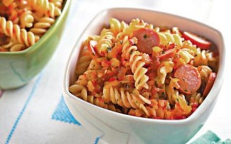 9. E para combinar com o melhor molho: macarrão com salsicha