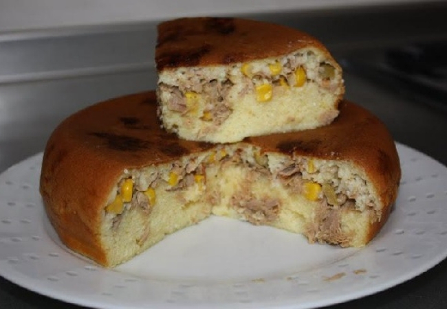 A torta salgada vai ficar no mesmo formato da cheesecake e do pão, pois esse é o formato da panela de arroz. Mas além de bonitinho, em um formato circular, a receita também fica deliciosa. Essa versão sugere fazer uma massa simples com trigo, leite, óleo, queijo, fermento e sal, com recheio de atum em lata.